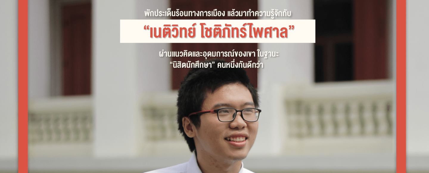 ปี 2017 นี้ พักประเด็นร้อนทางการเมือง แล้วมาทำความรู้จักกับ “เนติวิทย์ โชติภัทรไพศาล” ผ่านแนวคิดและอุดมการณ์ของเขา ในฐานะ “นิสิตนักศึกษา” คนหนึ่งกันดีกว่า