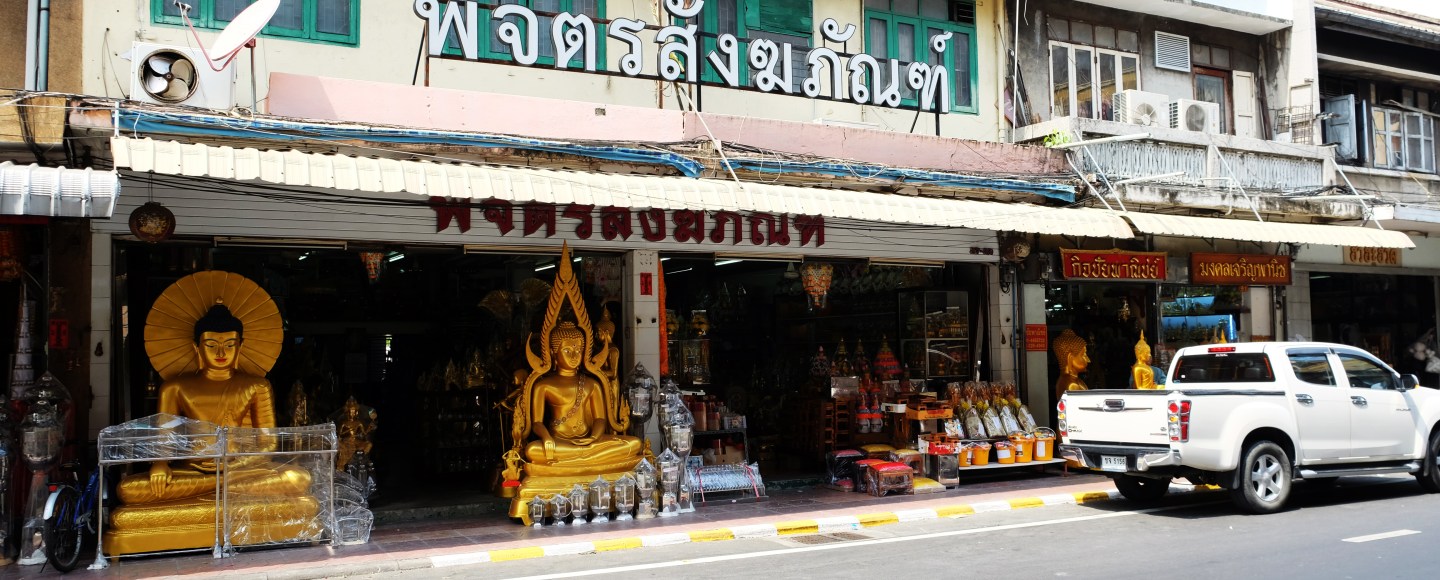 บริเวณด้านหน้าโกดังเก็บปฏิมากรรมพระพุทธรูปร้านรุ่งเรื่องพานิช