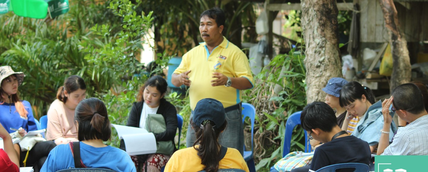 พ่ออุดม ฮิ่นเซ็ง ให้ความรู้แก่ผู้เข้ามาศึกษาชุมชน