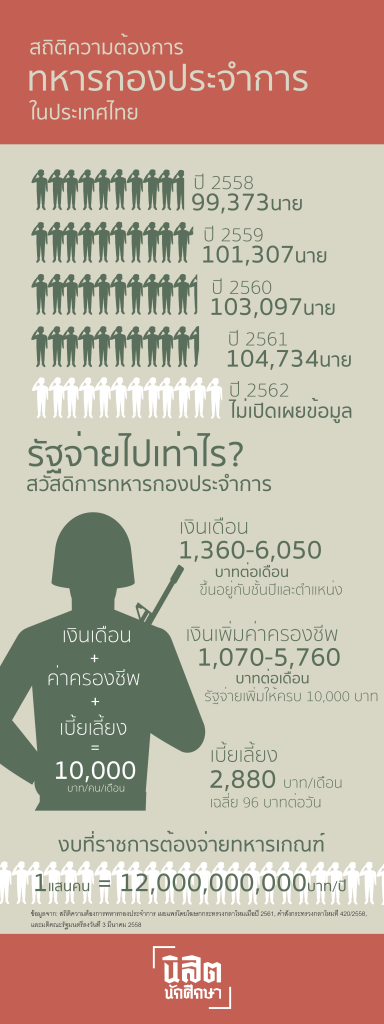 ข้อมูลสถิติความต้องการทหารกองประจำการ (ทหารเกณฑ์) และรายละเอียดค่าสวัสดิการทหารกองประจำการ