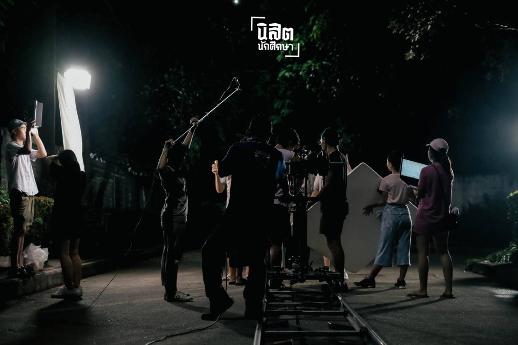 กองถ่ายภาพยนตร์กำลังถ่ายทำนอกสถานที่ในช่วงกลางดึก