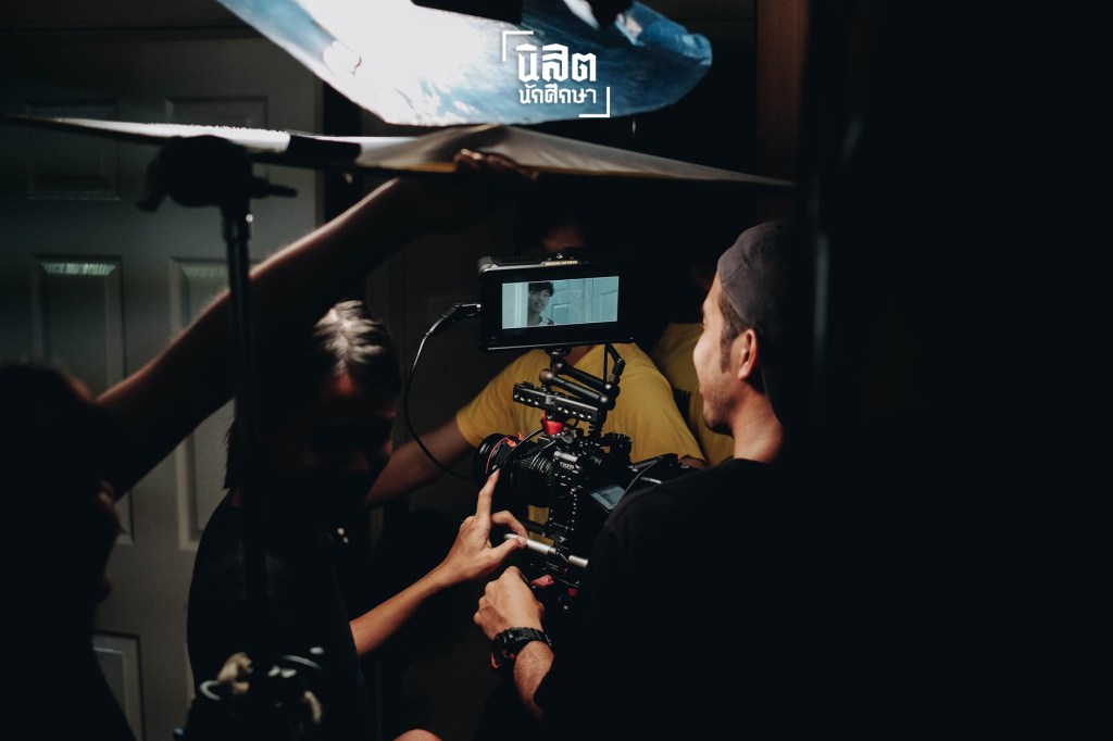 ผู้กำกับภาพและผู้ช่วยผู้กำกับภาพกำลังซักซ้อมมุมกล้องก่อนถ่ายจริง