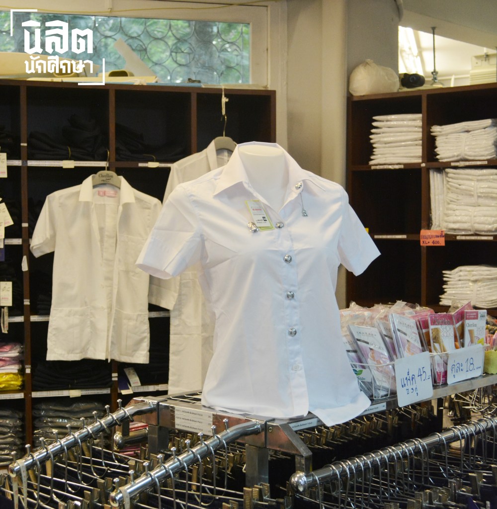 เสื้อนิสิตหญิงที่วางขายในร้านสหกรณ์จุฬาลงกรณ์มหาวิทยาลัย