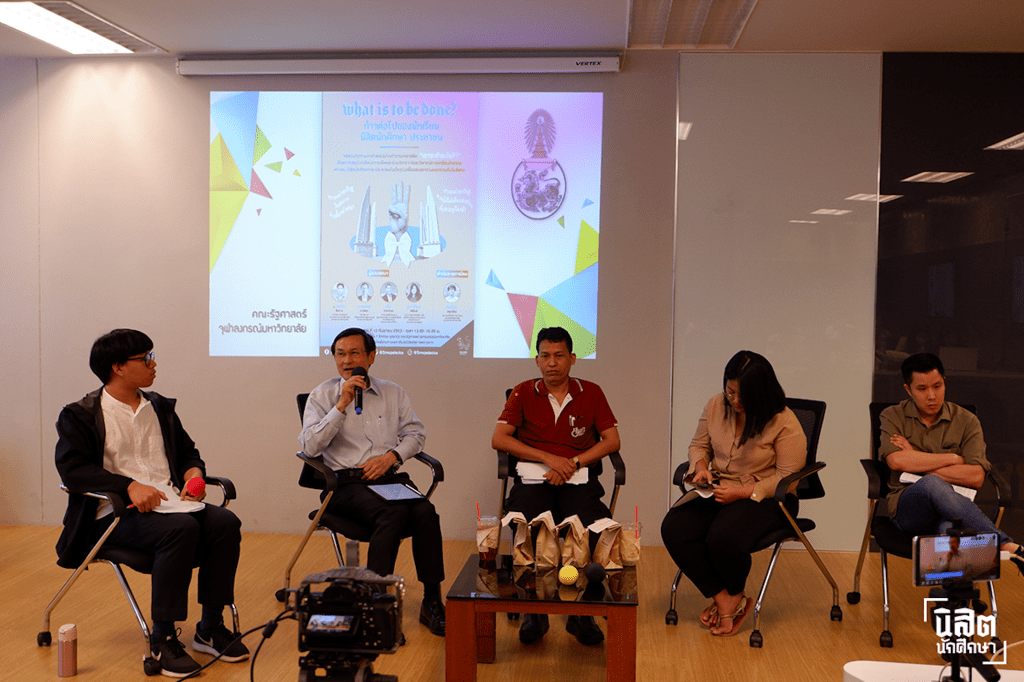 เมื่อวันที่ 12 ก.ย. สโมสรนิสิตรัฐศาสตร์ จุฬาฯ จัดเสวนา “What is to be done?: ก้าวต่อไปของนักเรียน นักศึกษา ประชาชน” เพื่อวิเคราะห์และวิพากษ์การเคลื่อนไหวที่นำโดยเยาวชน และร่วมหาคำตอบว่าจะร่วมกันเดินหน้าเพื่อสร้างสังคมประชาธิปไตยอย่างยั่งยืนอย่างไร