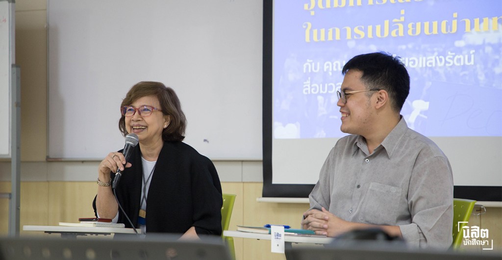 เมื่อวันที่ 22 ก.ย. นิธินันท์ ยอแสงรัตน์ สื่อมวลชนอาวุโส อดีตบรรณาธิการอาวุโสเครือเนชั่น ได้ร่วมสนทนากับนิสิตในหัวข้อ “จาก 6 ตุลา ถึง 19 กันยา: อุดมการณ์วารสารศาสตร์ในการเปลี่ยนผ่านทางสังคม” ที่จัดโดยกองบรรณาธิการ “นิสิตนักศึกษา” คณะนิเทศศาสตร์ จุฬาลงกรณ์มหาวิทยาลัย เพื่อย้ำถึงหลักการและบทบาทที่สื่อสารมวลชนควรปฏิบัติท่ามกลางความขัดแย้งทางการเมืองในสังคมไทย