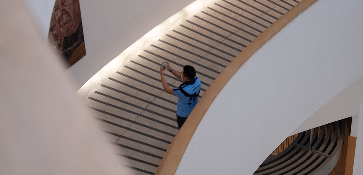 ทางเดินบริเวณผนังโค้งของหอศิลป์กรุงเทพฯ ชั้น 7