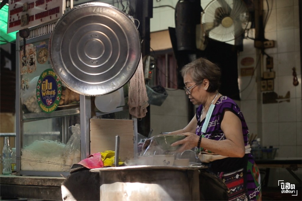 เจ๊เล่าขณะทำก๋วยเตี๋ยวให้กับลูกค้าที่หมุนเวียนเข้ามารับประทาน เเละดูเหมือนว่าจะเป็นคนที่เจ๊คุ้นเคยทั้งสิ้น “อยู่ละเเวกนี้ ก็ต้องรู้จักกันทั้งนั้นเเหละ รู้จักหน้าค่าตากัน รู้หน้าก็ทักทายกันเเบบนี้เเหละ … มันผูกมัดผูกพันกันอยู่ตรงนี้เเต่ไหนเเต่ไรเเล้ว”