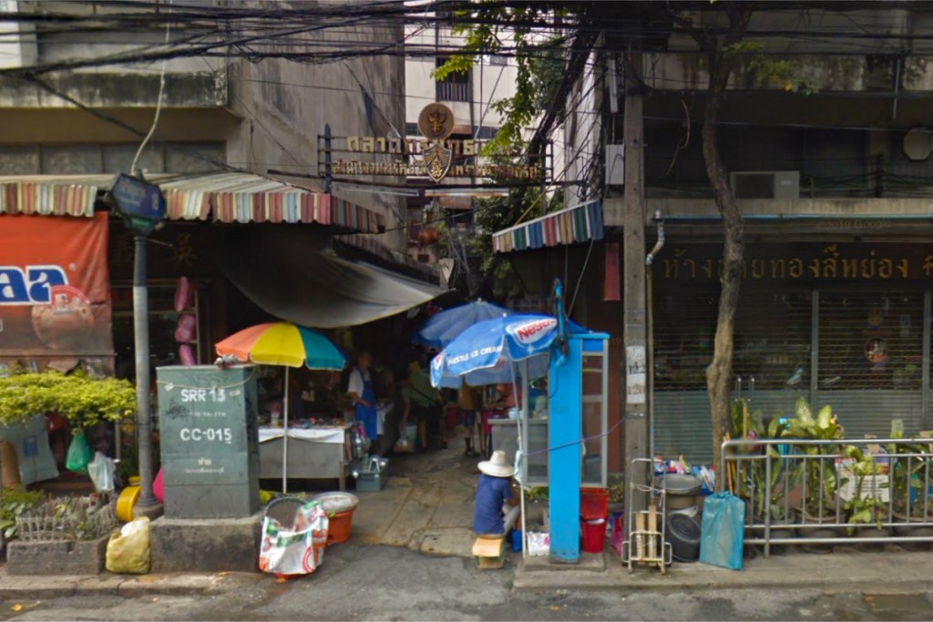 ซอยเจริญกรุง 18 ทางเข้าหลักตลาดกรมภูธเรศ พร้อมป้ายชื่อตลาด