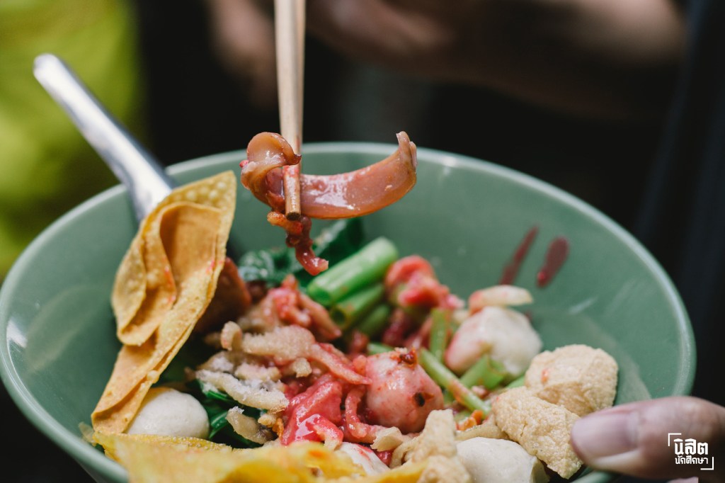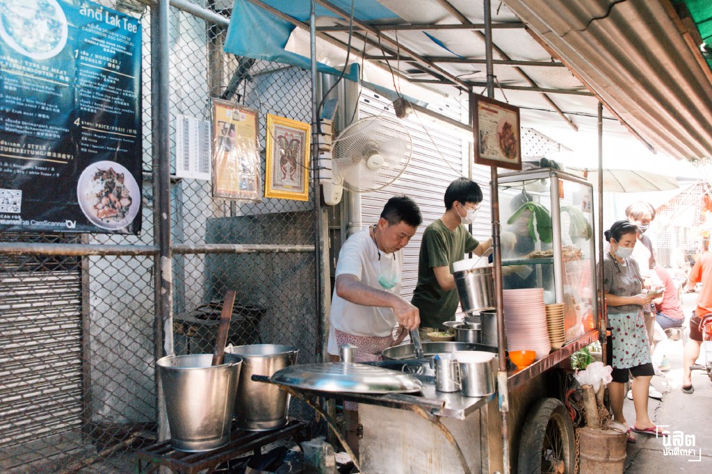 หากเดินเข้ามาในตรอกเจริญไชยเกือบสุดซอยก็จะเจอกับรถเข็นของร้าน “ลักตี๋บะหมี่เกี๊ยวทะเล” เป็นบะหมี่หวานสูตรจีนโบราณ เปิดมามากกว่า 20 ปี ซึ่งปัจจุบันรุ่นลูกได้เข้ามาช่วยสืบต่อกิจการแล้ว