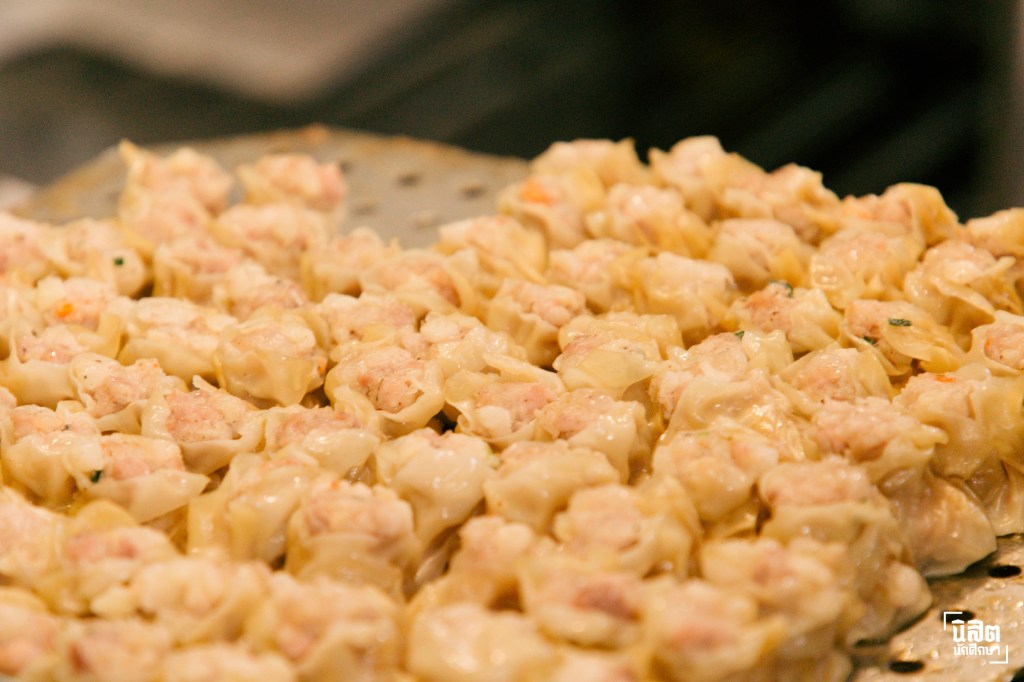 ขนมจีบและเกี๊ยวกุ้งทอดชิ้นใหญ่ตรงหน้า ทำให้คนที่เดินผ่านไปผ่านต้องแวะซื้ออย่างแน่นอน ความพิเศษคือเป็นขนมจีบที่ผสมทั้งหมูและกุ้งไว้ในชิ้นเดียวกัน มีขนาดใหญ่กว่าขนมจีบทั่วไป เนื้อแน่นเต็มคำ แป้งนุ่มกำลังดี ราคากล่องเล็ก 60 บาท กล่องใหญ่ 120 บาท กินคู่กับน้ำจิ้มที่ให้รสเปรี้ยว ตัดกันอย่างลงตัว