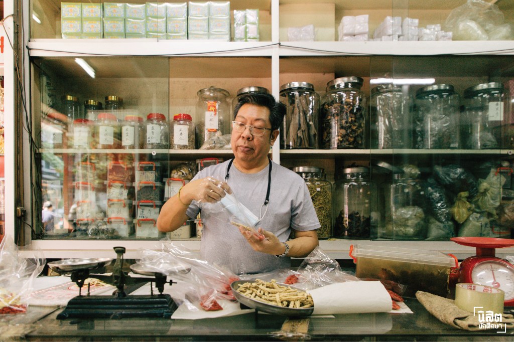 หนึ่งในปัจจัยสี่ที่คนเราขาดไม่ได้ในการดำรงชีวิตคือยารักษาโรค ในย่านเยาวราช-เจริญกรุงซึ่งเป็นชุมชนเก่าแก่ของคนจีน ตามริมถนนและตรอกซอกซอยมักมีร้านขายยาแผนโบราณตั้งอยู่ให้เห็นไม่หนึ่งก็สองร้าน บางร้านก็ถูกปรับแต่งให้คล้ายกับร้านขายยาแผนปัจจุบัน บ้างก็คงไว้ซึ่งความเป็นร้านเก่าแก่ บางร้านก็ยังคงมีการค้าขายอยู่ตามปกติ ในขณะที่บางร้านก็เหลือไว้แต่ป้ายชื่อให้เห็นว่าเคยเป็นร้านอะไรมาก่อน