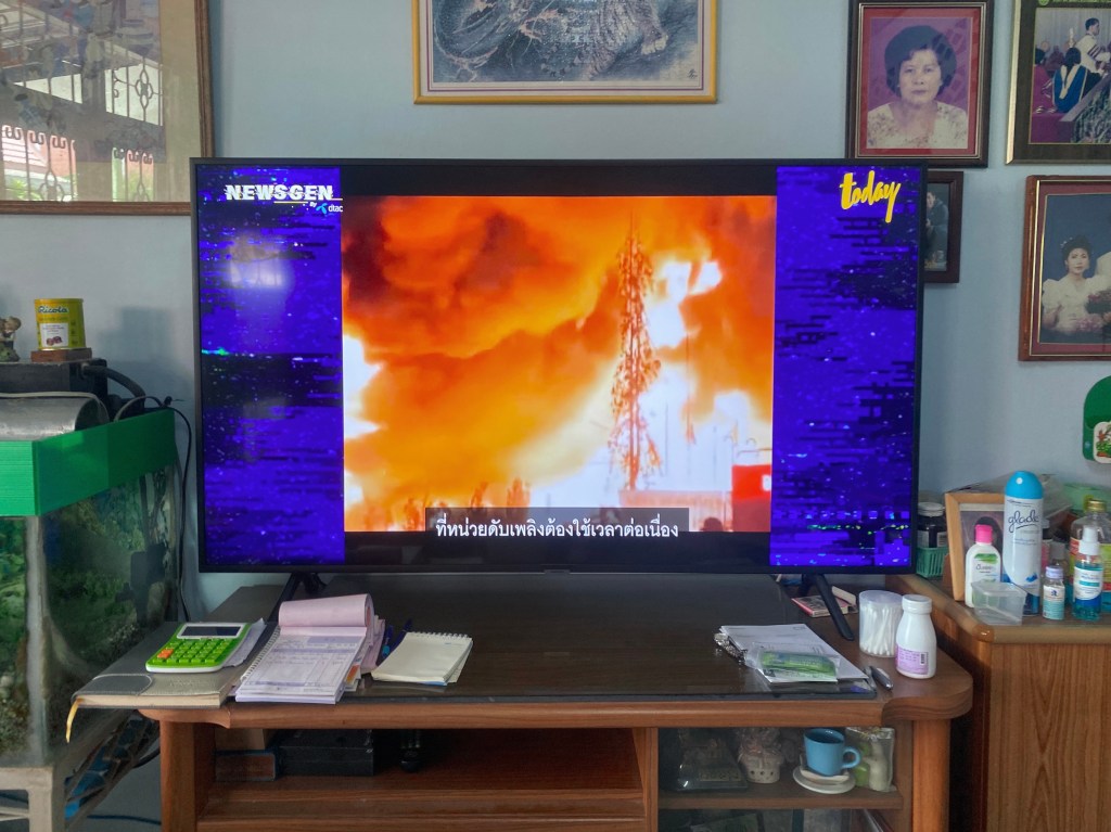 ประชาชนติดตามสถานการณ์เพลิงไหม้จากการรายงานข่าวทางโทรทัศน์