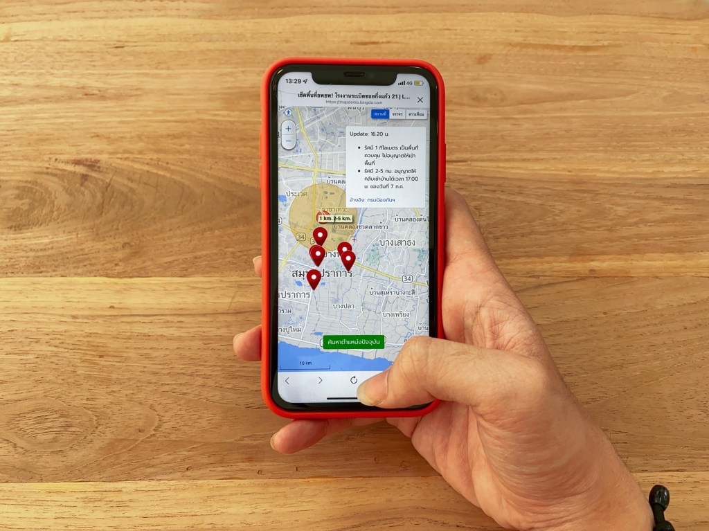 ด้าน นิธิกร บุญยกุลเจริญ หนึ่งในทีมผู้ผลิตระบบเช็กพิกัดไฟไหม้จากเหตุการณ์โรงงานกิ่งแก้ว เผยว่า แท้จริงแล้วการใช้เทคโนโลยีเพื่อกระจายข้อมูลและสั่งการให้อพยพไม่ใช่เรื่องยาก หลังจากเกิดเหตุจึงร่วมมือกับทีมโปรแกรมเมอร์เร่งจัดทำระบบเช็กพิกัดไฟไหม้ในทันที