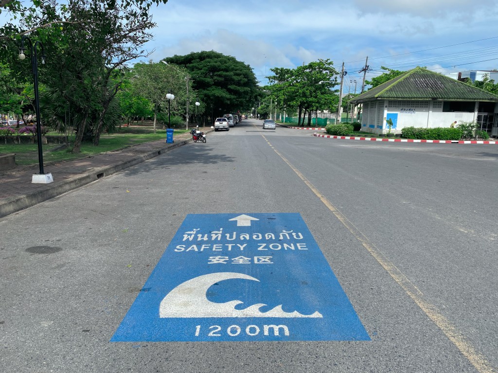 ป้ายแสดงพื้นที่เสี่ยงภัยคลื่นยักษ์สึนามิ บริเวณสวนสาธารณะสะพานหิน จังหวัดภูเก็ต