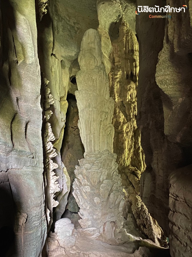 หินงอกหินย้อยรูปร่างคล้ายเจดีย์ที่อยู่กลางถ้ำ