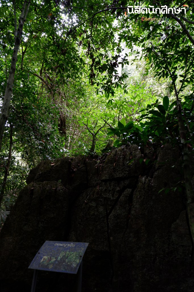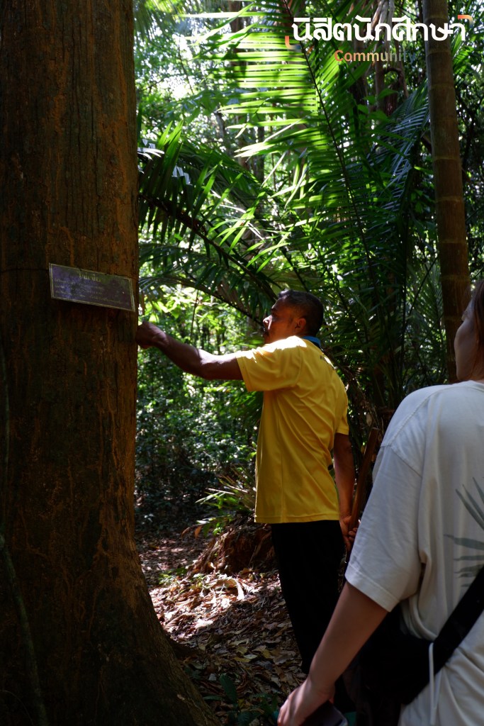 แต่หากเริ่มจากศาลาใหญ่ แล้วเดินไปทางทิศตะวันออก สักพักก็จะเจอศาลาขนาดเล็กเป็นที่นั่งพักกลางป่า ถัดไปไม่ไกลจะเจอกับ ‘ต้นพูพอน’ ไม้ใหญ่ขนาด 10 กว่าคนโอบ ต้นพูพอนมีรากใหญ่ ซึ่งทำให้สามารถส่งลำต้นให้ตั้งตรงและสูงขึ้นไปได้มาก นี่เป็นอีกจุดถ่ายรูปสำคัญที่ไม่ควรพลาดหรือจะนั่งพักหลบแดดคลายร้อนก่อนออกเดินทางต่อก็ย่อมได้