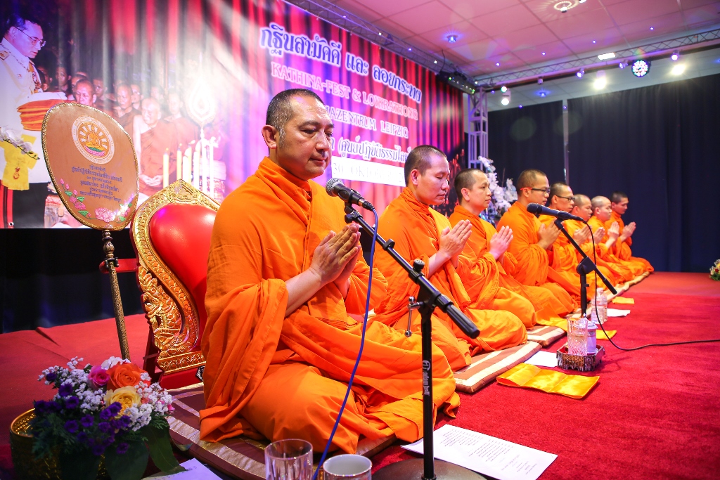 คณะสงฆ์สวดพระพุทธมนต์ ณ วัดไทยไลพ์ซิก ประเทศเยอรมนี ในงานทอดกฐินสามัคคีและงานลอยกระทง