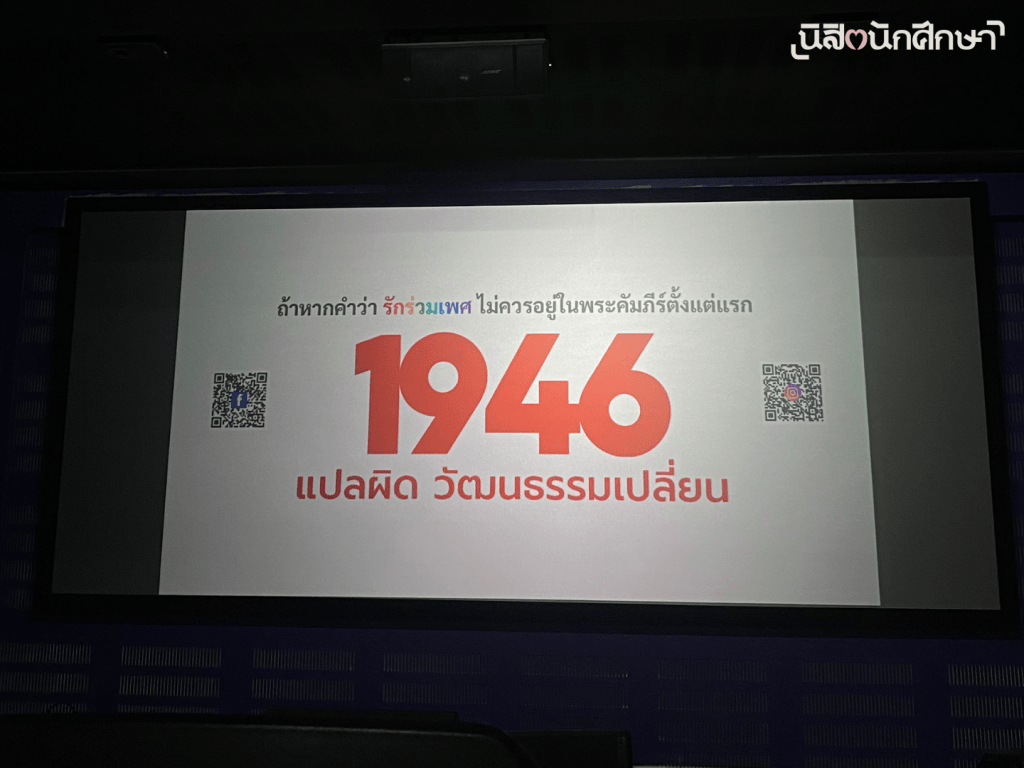 ‘การแปลความหมายที่ผิด’ ที่ฤกษ์สินกล่าวถึงนั้น อ้างอิงจากภาพยนตร์สารคดีเรื่อง 1946: The Mistranslation That Shifted Culture โดย ชารอน โรจจ์จิโอ (Sharon Roggio) ที่นำเสนอเรื่องราวของนักวิจัยผู้สืบค้นต้นตอของขบวนการต่อต้าน LGBTQIA+ ในหมู่คริสเตียน และพบว่าจุดเริ่มต้นในการใช้คำว่า ‘รักร่วมเพศ (Homosexual)’ มาจากการแปลภาษากรีก 2 คำ คือ ‘malakoi’ กับ ‘arsenokoitai’ ใน 1 โครินธ์ 6:9 มาตีความรวมกันซึ่งปรากฏครั้งแรกเมื่อ ค.ศ. 1946