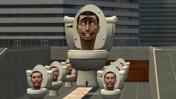 ความไร้แก่นสารของตัวละครสุดเพี้ยนไม่ได้ปรากฏเพียงใน Italian Brainrot เท่านั้น หากย้อนกลับไปในปี 2023 เราจะพบอีกหนึ่งมีมที่โด่งดังไม่แพ้กันในหมู่เจนอัลฟ่าอย่าง Skibidi Toilet แอนิเมชันเหนือจริงที่สร้างด้วยโปรแกรม Source Filmmaker โดยอเล็กเซย์ เกราซิมอฟ (Alexey Gerasimov) ซึ่งเล่าเรื่องสงครามระหว่างชักโครกที่มีหัวคนร้องเพลง Skibidi dop dop yes yes กับเหล่า Cameraman ความแปลกใหม่และอารมณ์ขันแบบไร้ตรรกะทำให้เข้ากับรสนิยมของเด็กรุ่นนี้ และแพร่กระจายบนแพลตฟอร์มวิดีโอสั้นจนกลายเป็นไวรัลในเวลาอันรวดเร็ว